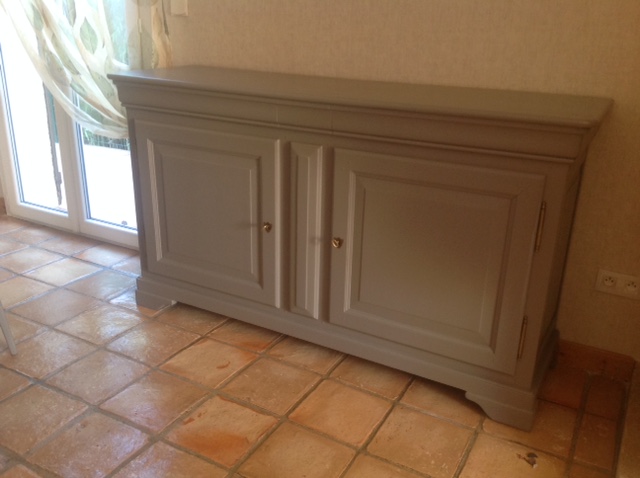 Décapé par aérogommage, ce bahut a ensuite été repeint dans un coloris plus actuel qui est le taupe. Un voile de vernis satiné a enfin été appliqué pour lui donner une protection optimale cela permet à votre bahut de pouvoir être nettoyé facilement et ainsi garder sa joli couleur durant des années.
