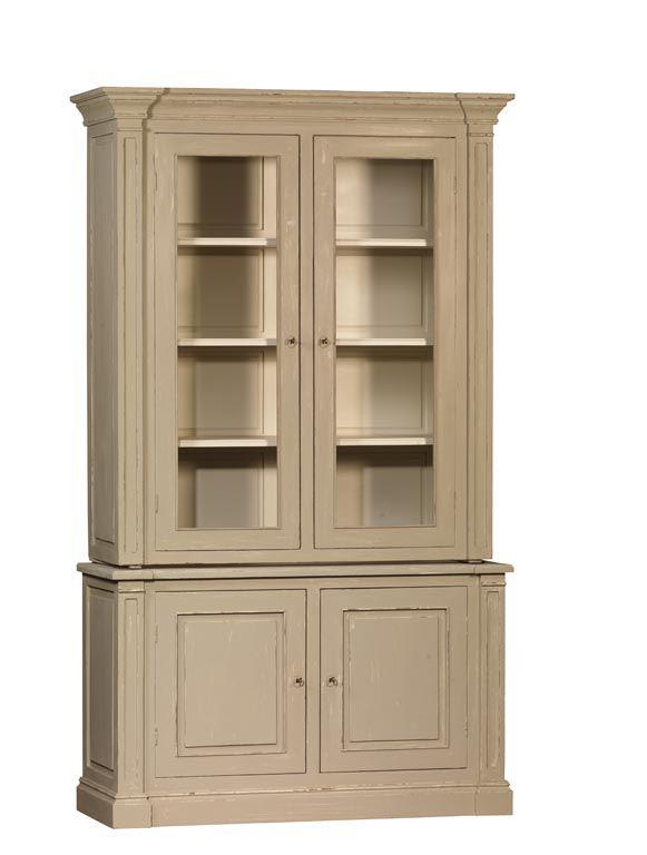 La bibliothèque 2 corps 2 portes patinée de la collection Rivoli est composée d'un buffet 2 portes ainsi que d'une partie haute comprenant 2 portes vitrées ou grillagées selon vos goûts.