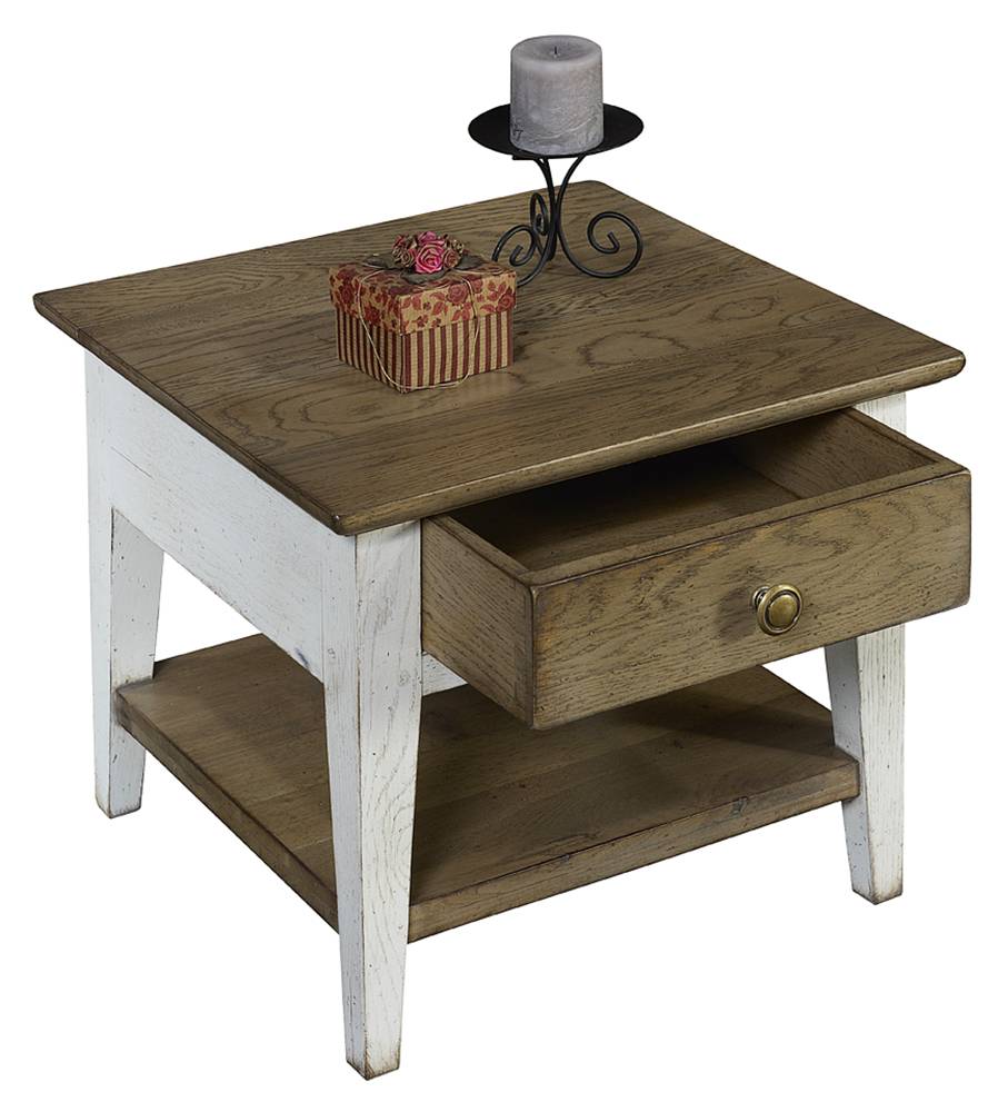 Bout de canapé carré double plateau avec un tiroir en chêne massif.