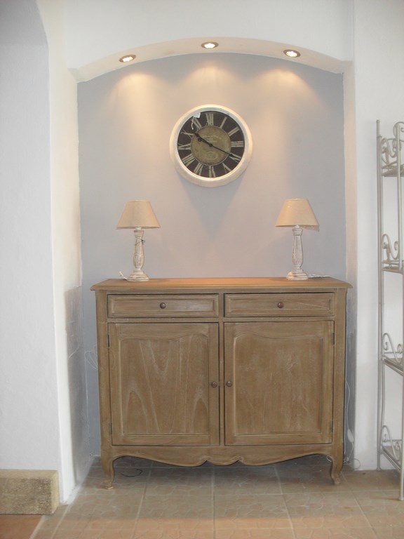 Ce buffet cérusé en bois exotique (mindi/bayur) s'intègrera parfaitement dans un intérieur classique ou encore campagne chic.
