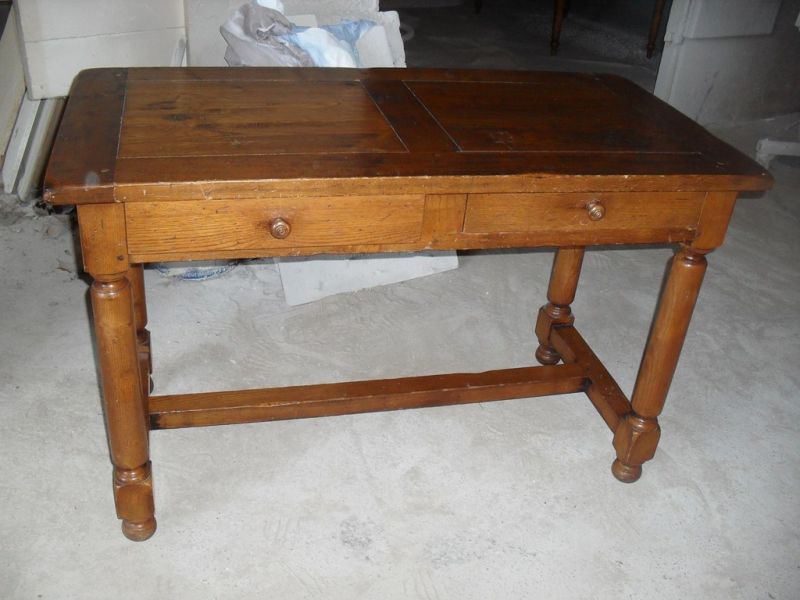 Un nouveau look très actuel pour ce magnifique bureau en châtaignier massif, customisé en blanc cassé usé ce bureau est redevenu tendance et s'harmonise maintenant parfaitement à la nouvelle déco intérieur.