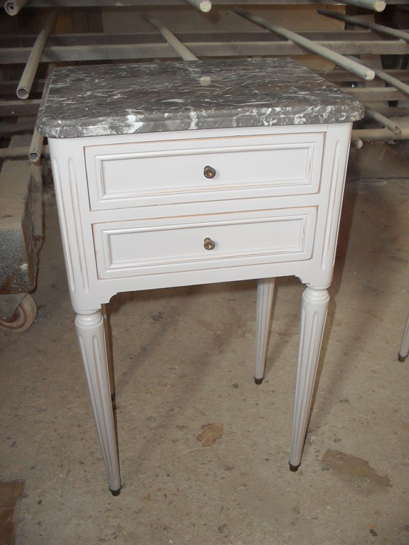 Charme et authenticité, voilà ce qui caractérise ce petit chevet ancien de style Louis XVI qui a subi le relooking de sa vie!