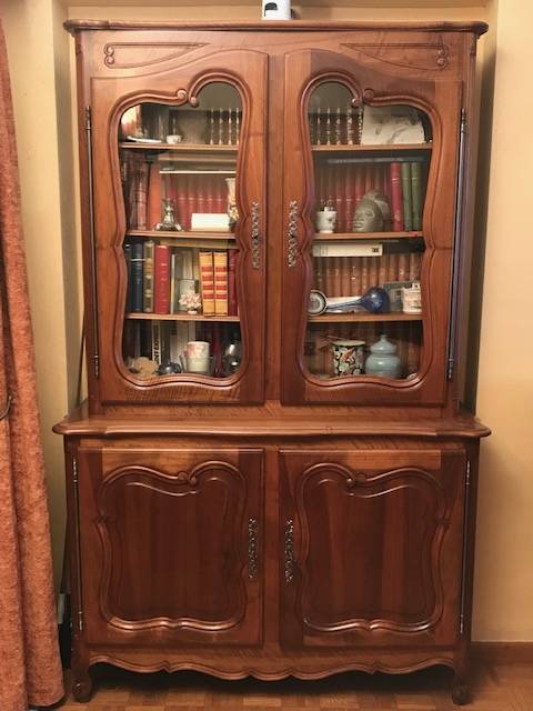 Décapage et finition d'un bahut vaisselier vitré en noyer à Aix en provence