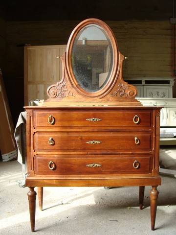 Idéale pour orner une chambre une coiffeuse ancienne patiné gris donnera du charme à votre pièce.