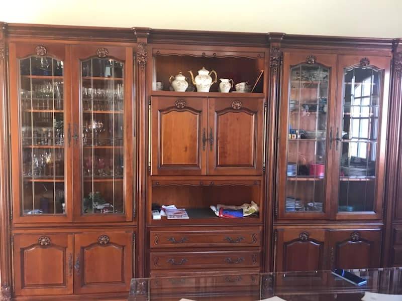 Living ancien en merisier relookée en taupe cérusé blanc à Marseille 13
