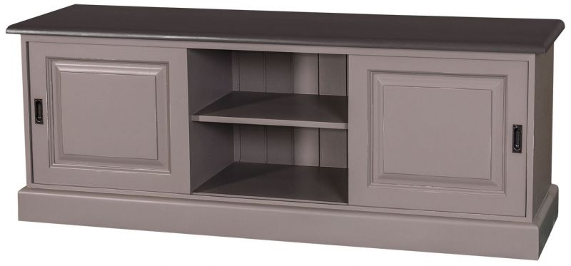 Meuble T.V. 2 portes coulissantes patiné en chêne massif ou en pin massif