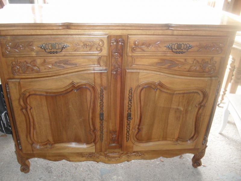 Ce joli buffet très travaillé se nettoiera très facilement grâce à son vernis de protection.