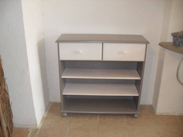 Relooking d'une console en bois vernis par le magasin Les Finitions de Provence à Mallemort